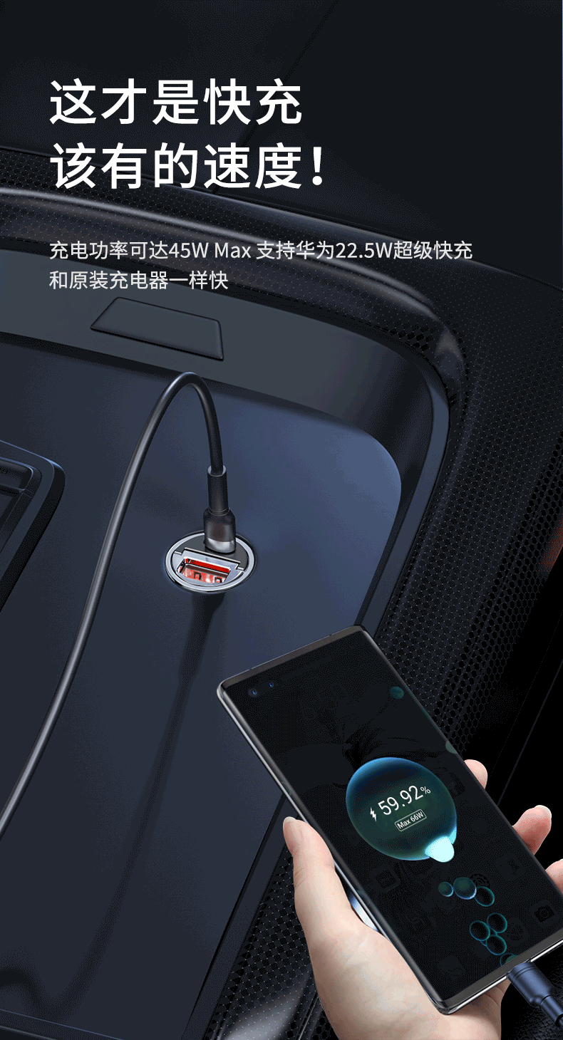 商品名称:REMAX【隐形快充】车载充电器52.5w点烟器一拖二三双口快充汽车转换头