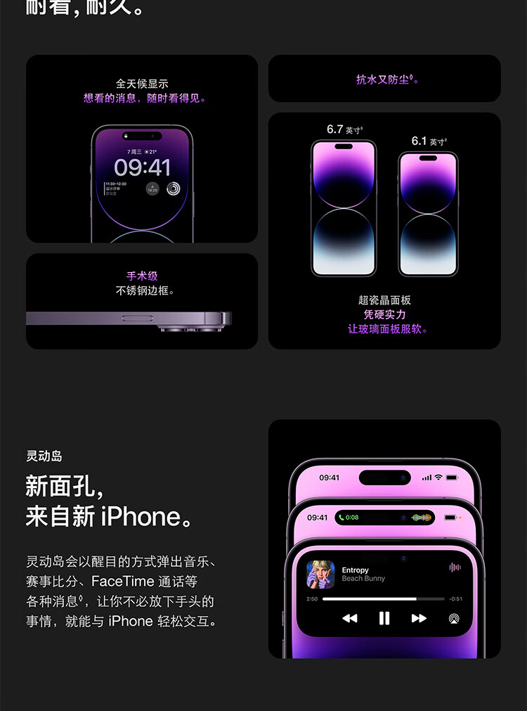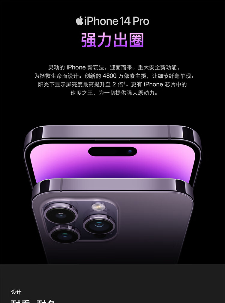 商品名称:Apple iPhone 14 Pro Max (A2896) 256GB 暗紫色 支持移动联通电信5G 双卡双待手机